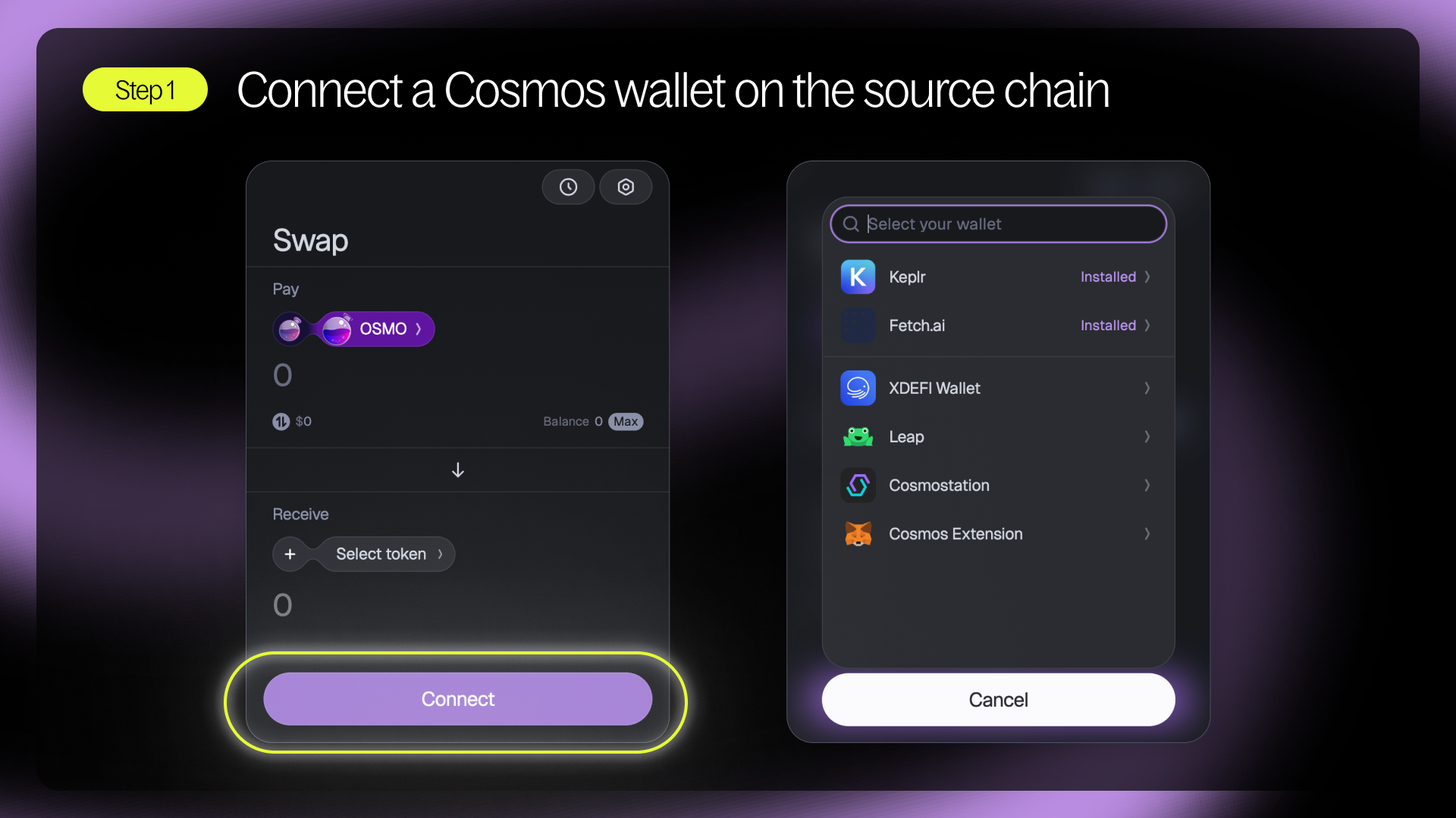 Step 1 - Connect your Cosmos wallet to app.squidrouter.com