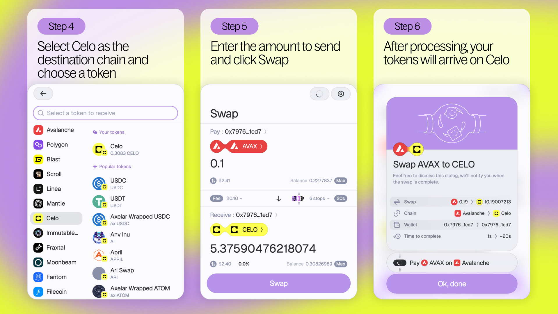 Interested in bridging to Celo? Use Squid and directly bridge any token to Celo from any EVM or Cosmos chains! We’ve put a guide together to show you how.