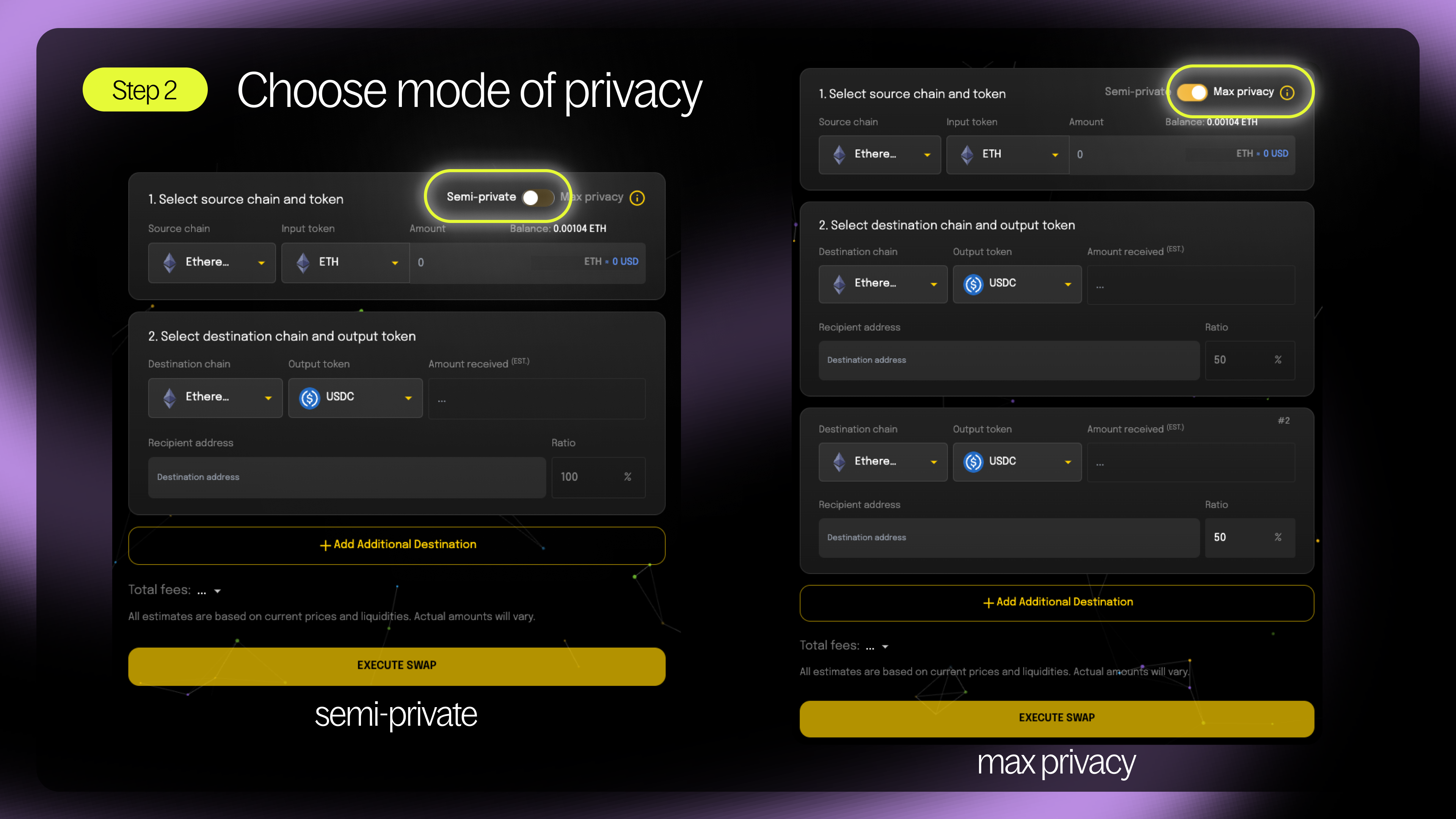 Step 2 - Once you’ve connected your wallet, choose your mode of privacy for the intended swap. The two available modes are: