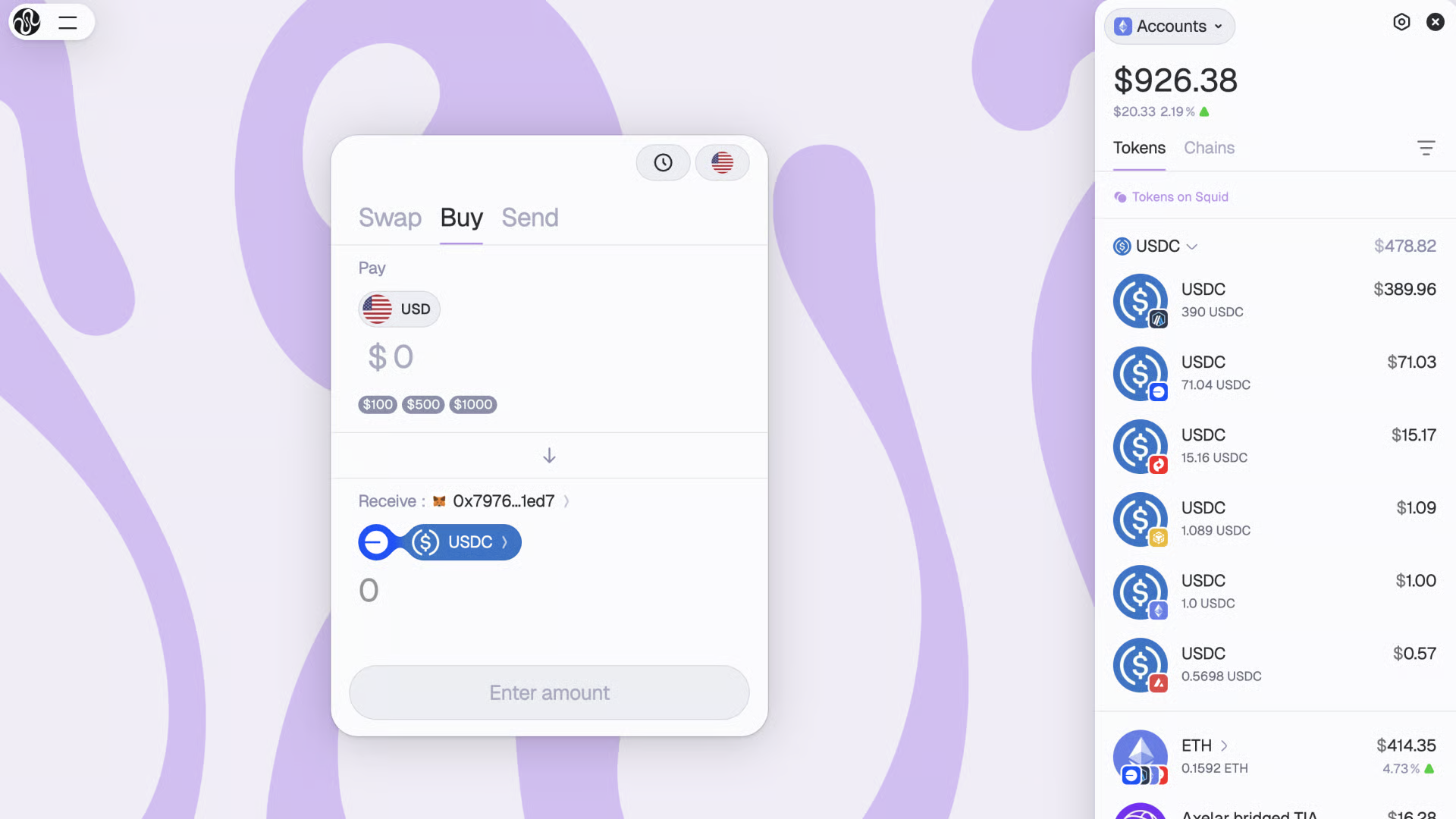 And don’t forget - Sign into Squid Wallet View to see all assets across chains in one place. Including the tokens you just bought with your credit card.