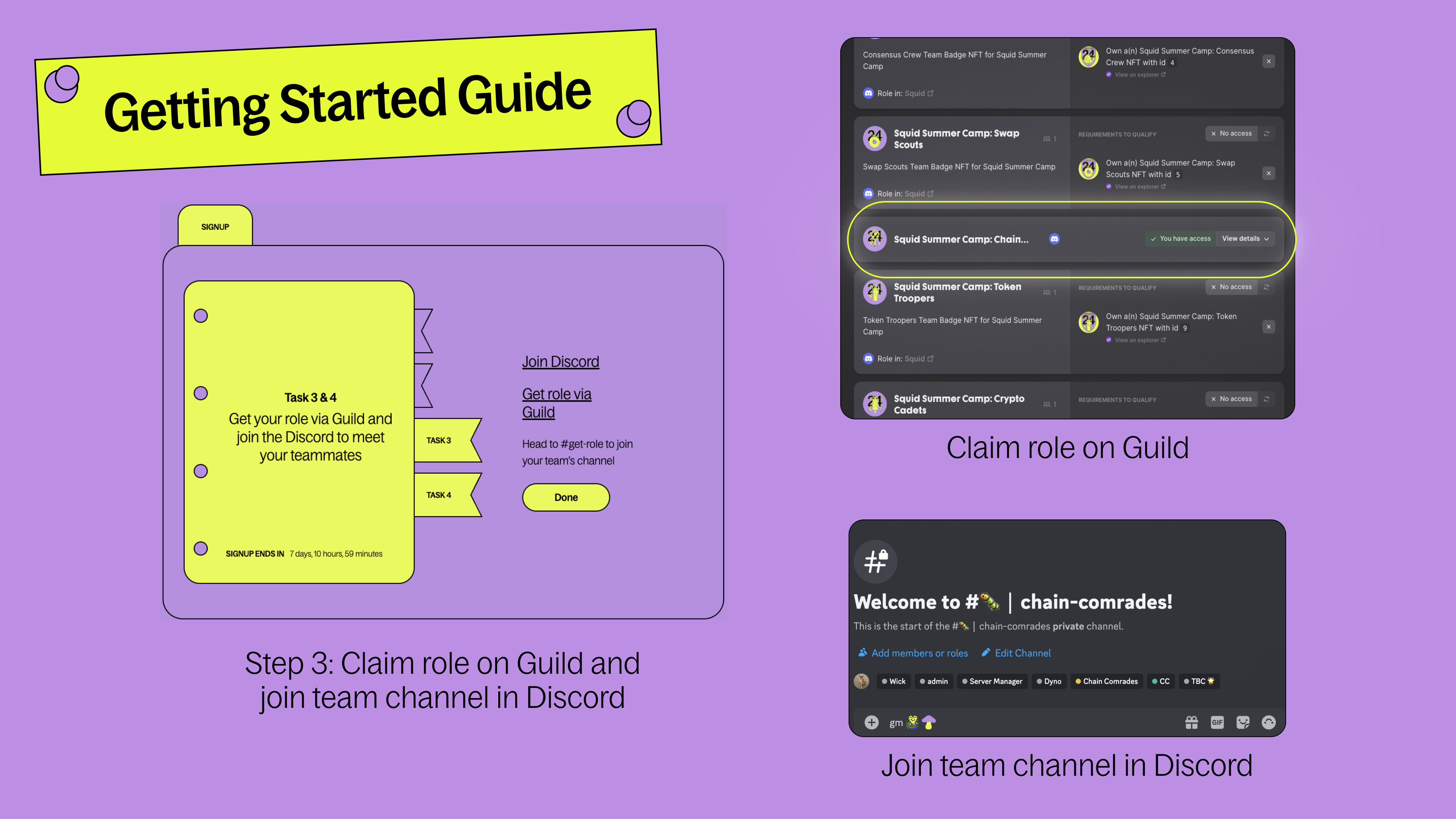 Step 3 - Now that you have your badge, claim your team role on Squid’s Guild so that you can access your private team channel in the Squid Discord server.