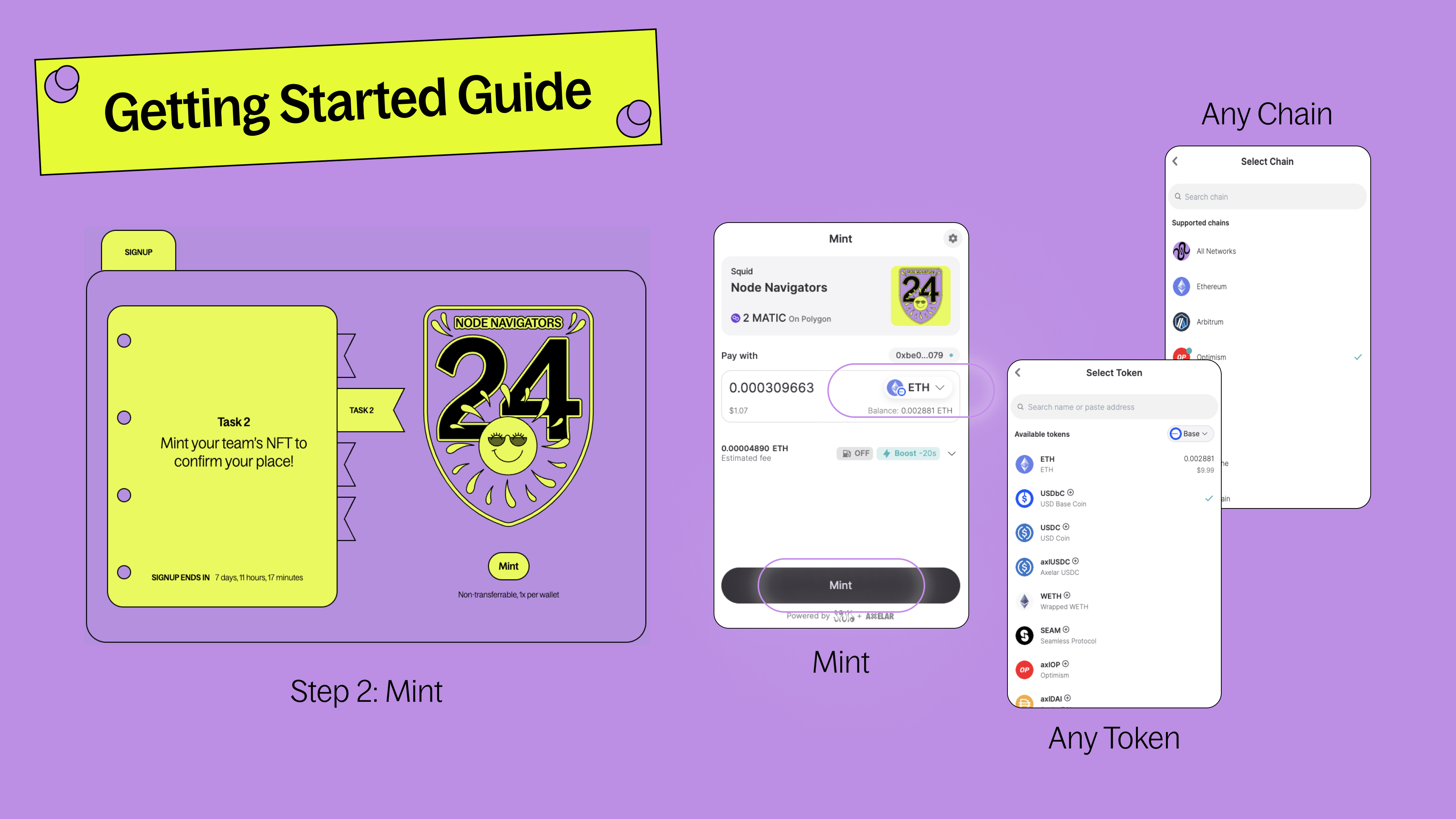 Step 2 - Mint your team badge NFT! Select the chain and token you’d like to use to pay, and click “Mint” to confirm.