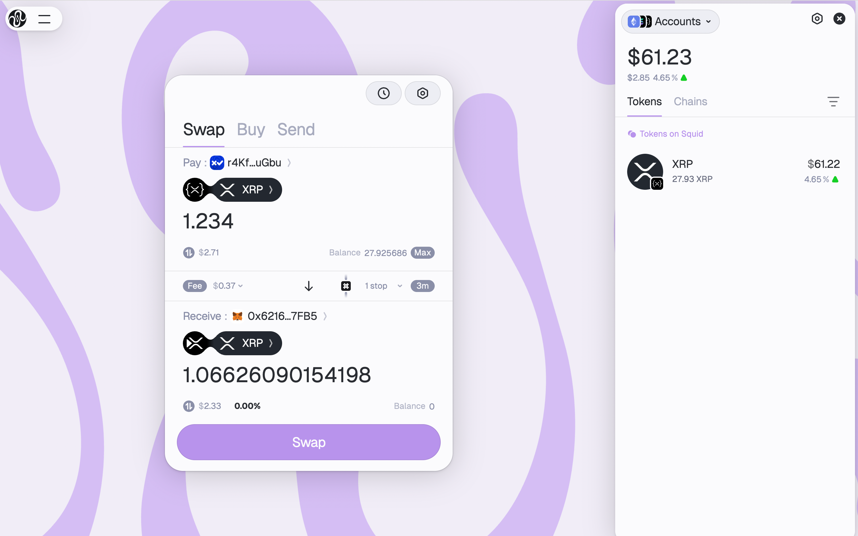 - Have your XRPL wallet address ready. Squid sends funds directly to this address.