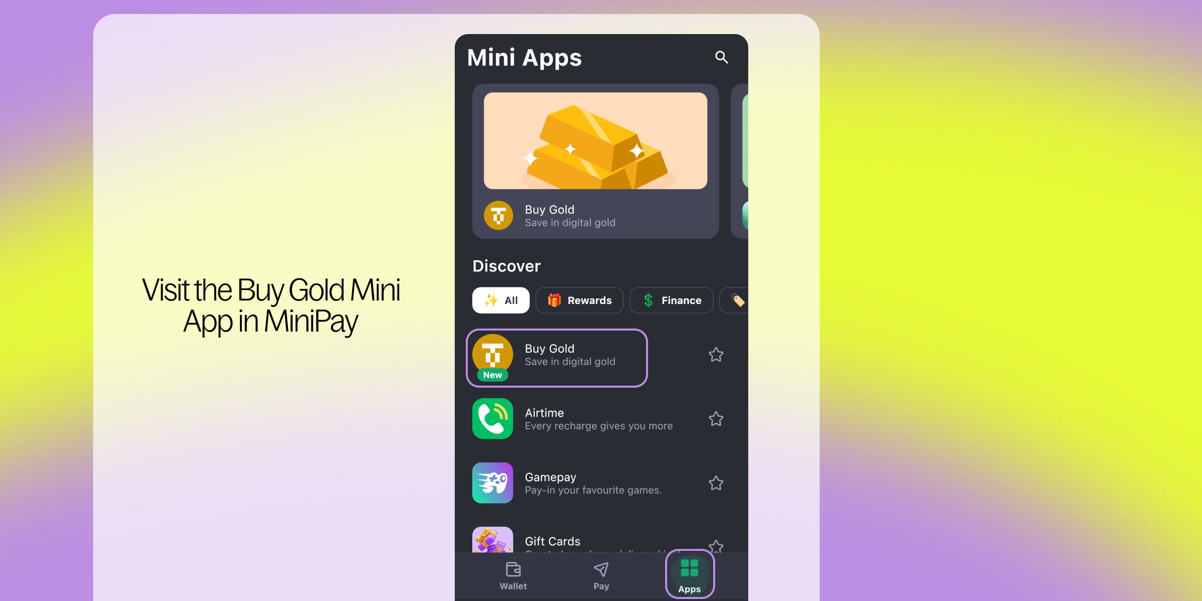 Step 1 - Visit the “Buy Gold” Mini App in MiniPay.