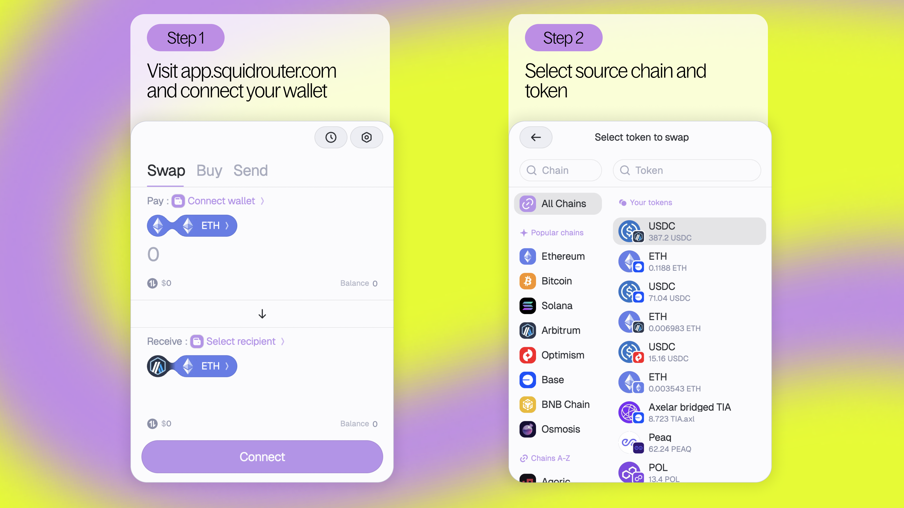 Step 1 - Connect your wallet to app.squidrouter.com