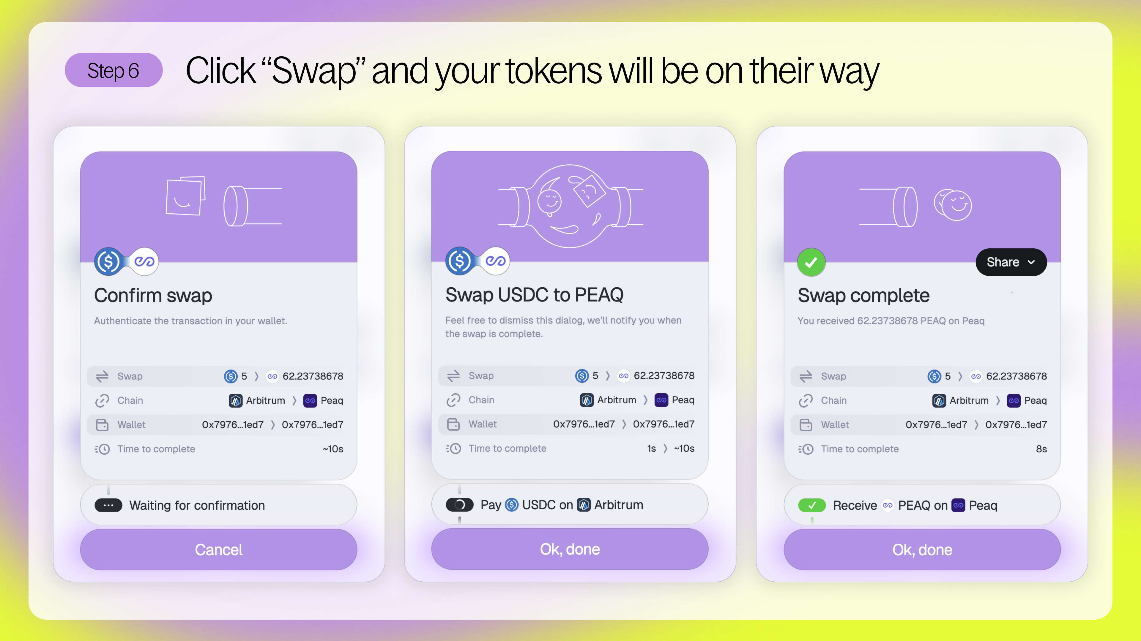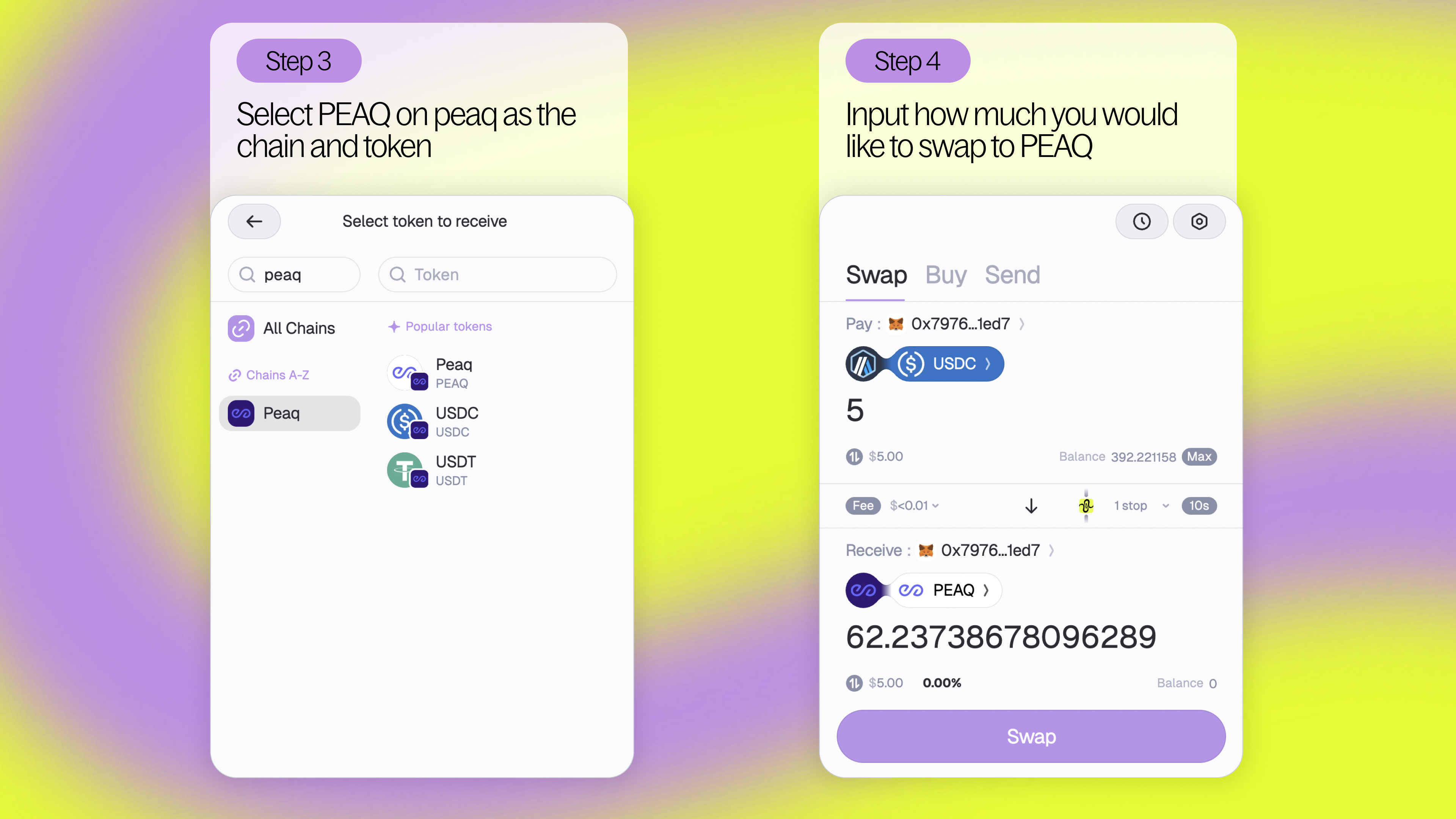 Step 4 - Choose the amount of USDC you’d like to swap to PEAQ.