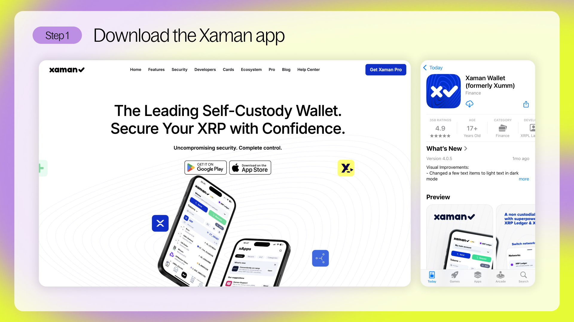 Vist xaman.app and follow the links to download Xaman from the App Store or Google Play. This mobile wallet is purpose-built for the XRP Ledger and makes it easy to create and manage XRPL wallets.