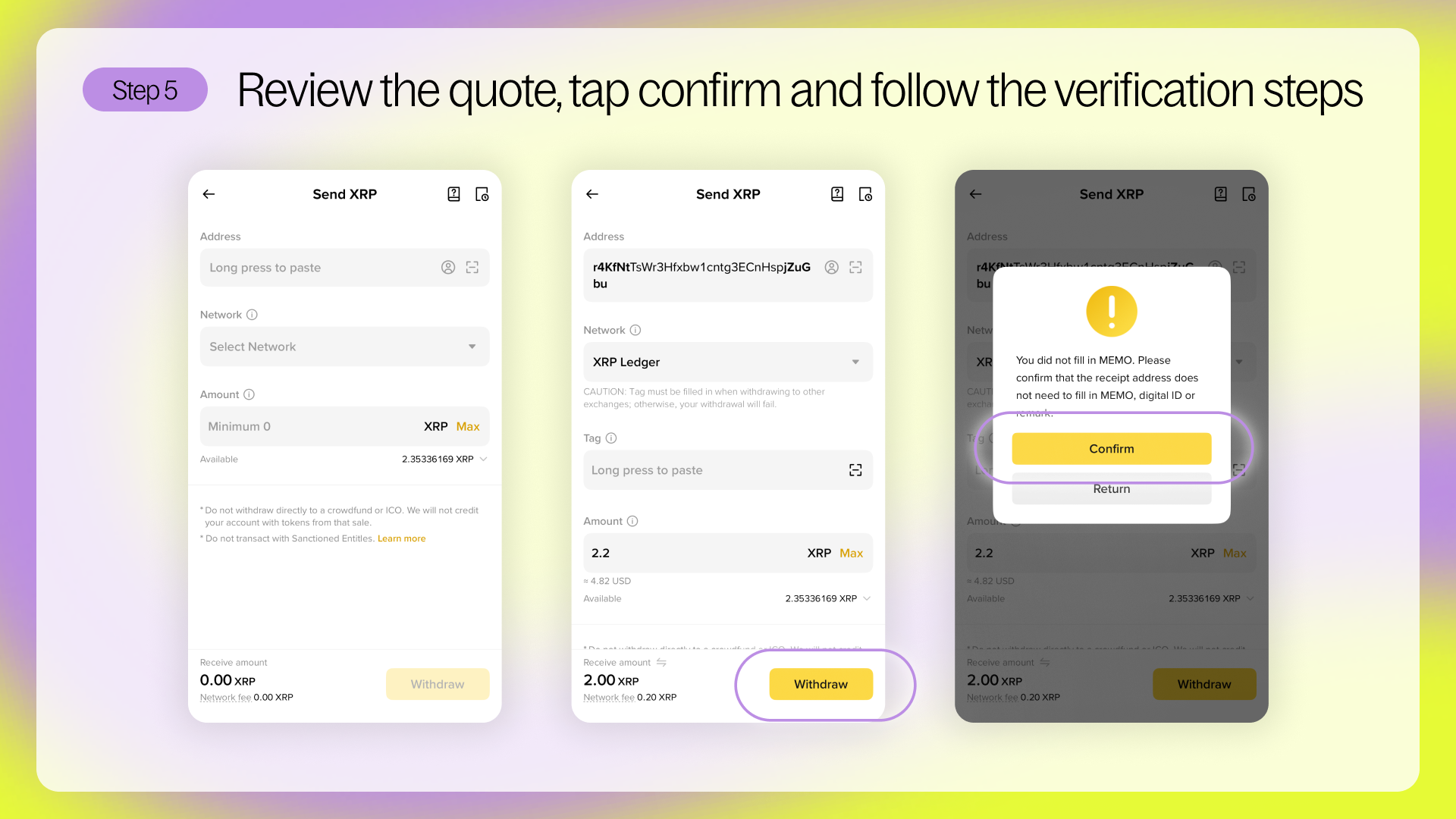 Step 5: Review the withdrawal quote and tap Confirm to send.